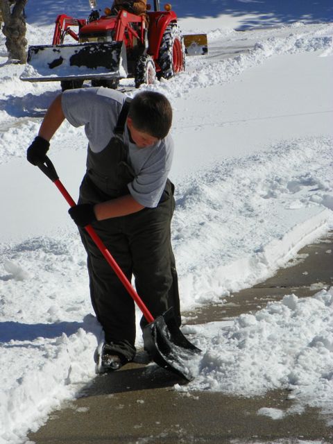 Dustin helping out. He did a great job scooping off the sidewalks.